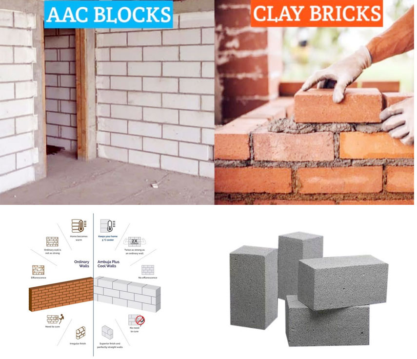 AAC block has high thermal and sound insulating properties whereas red clay bricks have low thermal and low sound insulation.